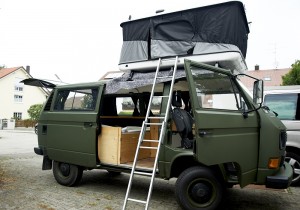 Nun gut, nicht jammern – reinhauen, war die Devise. In der verbleibenden Zeit statteten wir unseren Bus aus. Von der Zweitbatterie, über den Kompressorkühlschrank (eingebaut, ausgebaut, Bier, eingebaut, ausgebaut, Bier, eingebaut, ausgebaut, eingebaut, fertig) hin zum Dachzelt. Das ausgedachte Hängesystem mit IKEA Bauteilen, die gekürzten und angepassten Türen und die Putzaktion nicht zu vergessen. Hier darf mein Bruder nicht unerwähnt bleiben, ohne den wir das Rennen gegen die Zeit nicht geschafft hätten. Und trotz des ganzen Stress: Es hat richtig Spaß gemacht.