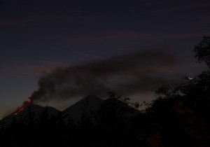 Dichter Nebel hängt über den Strassen. Frauen, wie Männer sind in gedeckte Farben gekleidet und säumen die Strassen. Es ist Sonntag. Der Tag der Kirche. Wir befinden uns im Hochland von Guatemala, auf 2000 Metern. Da sollte man sich über 10 Grad und nasskalt nicht wundern. Kurvig windet sich der Asphalt hinab, zurück auf 1300 Meter. Die perfekte Höhe, um Kaffee anzubauen. Auf dem Gelände der Cooperativa Chicoj Coban werden wir die Nacht und den folgenden Vormittag verbringen. Das nächste Ziel ist die viel gelobte Stadt Antigua. Dort gibt es aber nur schlechte Camping Möglichkeiten. So entscheiden wir uns für einen Platz etwas außerhalb der Stadt. Zum Glück, wie wir später feststellen werden. Die vergangenen Regentage sorgten für unreines Chaos im Bus. Jeder der mich kennt weiß, dass das zu einem besorgniserregenden Zustand meines Gemütes führen kann! Armer Marc. Wir nutzen also die Nachmittagssonne, um endlich wieder Klarschiff zu machen. Während der Blue Hour bestaunen wir den Gipfel des Vulkan de Agua. Wir haben perfekte Sicht. Doch plötzlich kommt hinter den Rauchschwaden ein roter Schimmer zum Vorschein. Erst vermuten wir, die Abendsonne spiegele sich in den Rußpartikeln. Zu abwegig ist die Vorstellung eines Vulkanausbruchs. Naja – manchmal ist das Leben aber abwegig. Der Vulkan bricht tatsächlich in dieser Nacht mit einer ungewöhnlichen Stärke aus. Stundenlang stehen wir in der Kälte und beobachten mit Fernglas und Teleobjektiv, wie sich die heiße Lava ihren Weg den Berg hinunter bahnt. Funken sprühen über dem Krater, wie bei einem überdimensionalen Lagerfeuer. Ganz schön aufregend. Am nächsten Morgen ist von der glühenden Spitze nichts mehr zu sehen. Der einzige Beweis für den Ausbruch ist die Asche, die in Antigua in der Luft schwebt. Und zwischen den Zähnen knirscht. Wir genießen die farbenfrohen Gassen dieser, nicht unangenehm touristischen Stadt. Die abgenutzten Fassaden an nahezu jedem Haus, lassen das Fotografenherz höher schlagen. Gekonnt holen wir uns einen Sonnenbrand, während das bunte Treiben dieses Ortes uns mitreisst. Hier gibt es eine Station der Policia Tourista, die es erlaubt auf ihrem Grund zu campen. Sie erlaubt auch, gefühlt allen Schulen drum herum, das Gelände als Sportplatz zu nutzen. So können wir Jungs, wie Mädels, beim Kicken im Staub beobachten. Zufällig auch dort, sind Karin und Manni. Die Beiden bereisen die Panamericana von Süd nach Nord, Zeitraum unbegrenzt. Karin hatte uns bereits eine Email geschrieben und mit den Worten „vielleicht sieht man sich ja bald in Guatemala“ geschlossen. Als hätte sie es gewusst. Alle zusammen gehen wir in ein österreichisches Restaurant und enden mit Rum in ihrem umgebauten LKW. Endlich machen wir uns auf den Weg Richtung Süden. Zu einem unserer Highlights – Der Lago de Atitlán. Wir kämpfen uns – mit Pausen für die Bremsen – eine unglaublich steile Strasse herunter. Zur Belohnung landen wir an einem wunderschönen Platz mit hervorragender Aussicht. Hier wollen wir uns ein wenig Pause gönnen. Wäre da nicht die Wäsche. In Lateinamerika wäscht man prinzipiell mit kaltem Wasser. Zum Ausgleich wird der Trockner dafür umso heißer eingestellt. Logisch. Resultat sind vergilbte, zu kleine T-Shirts und graue Laken. In mühsamer Handarbeit waschen wir meterweise Bettzeug mit irgendeinem Chemie-Kram, in der Hoffnung es würde besser. Vergebens. Und wenn jetzt einer fragt, warum wir auch weiße Bettlaken mitgenommen haben. Ja, hm, also – die waren halt im Schrank.
